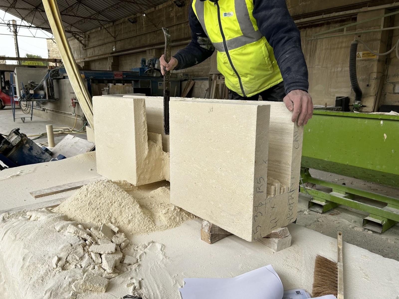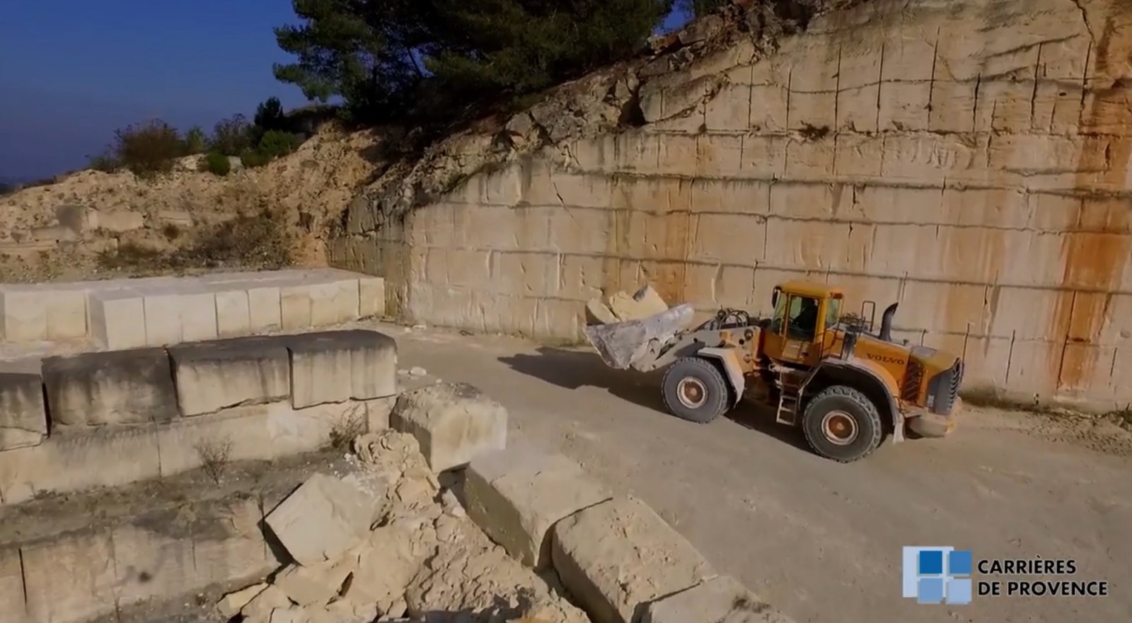 En effet, les blocs sont issus directement de nos carrieres à ciel ouvert, et sont sciés et débités sur place.