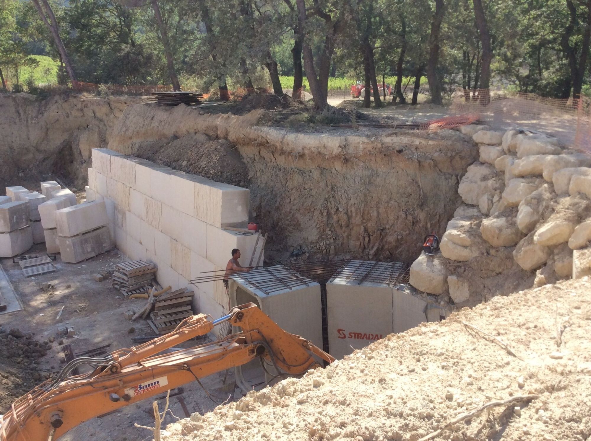 Mur de soutènement réalisé avec des gabions massifs percés en Estaillades.