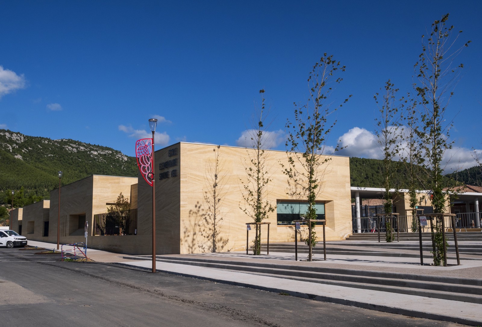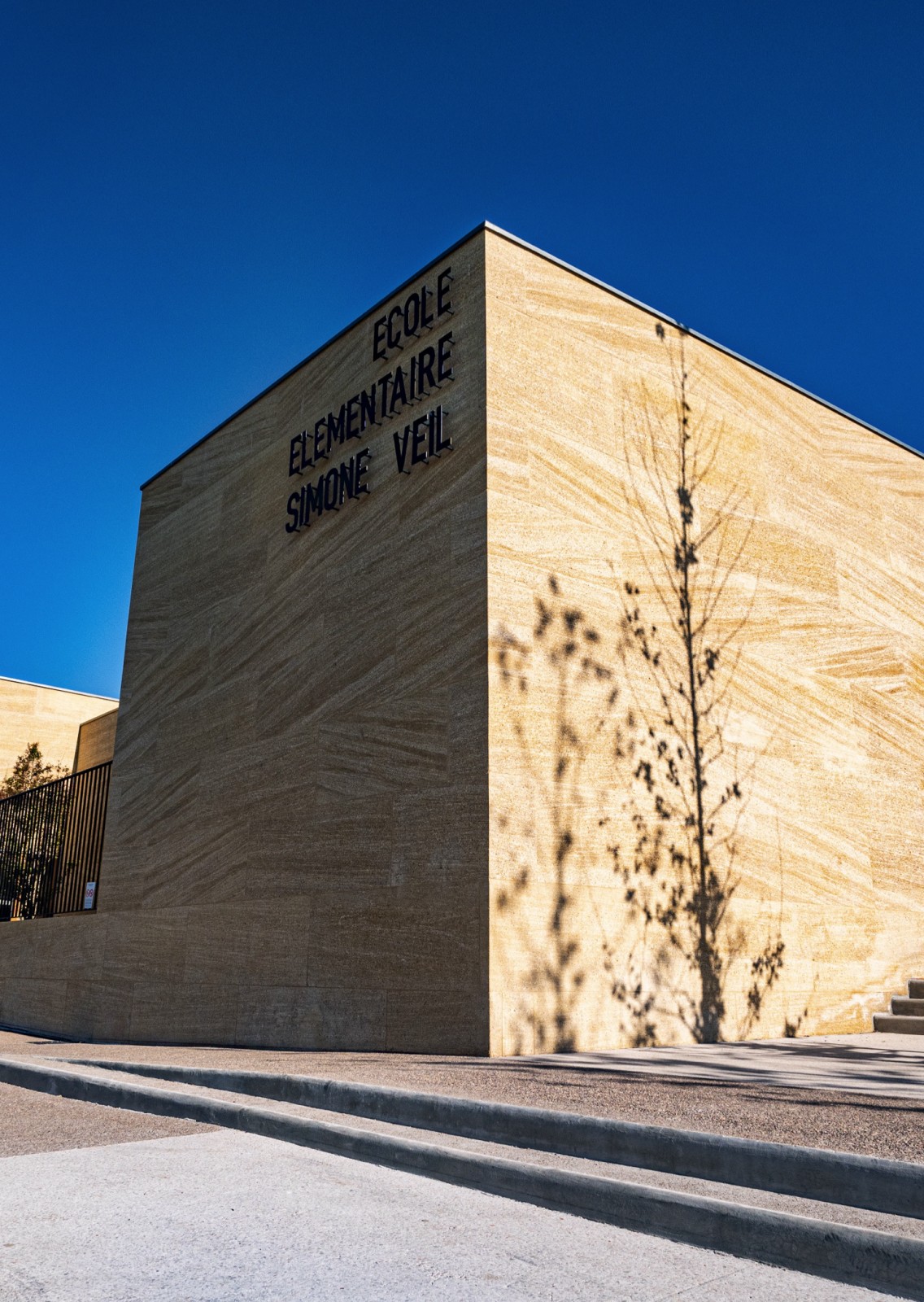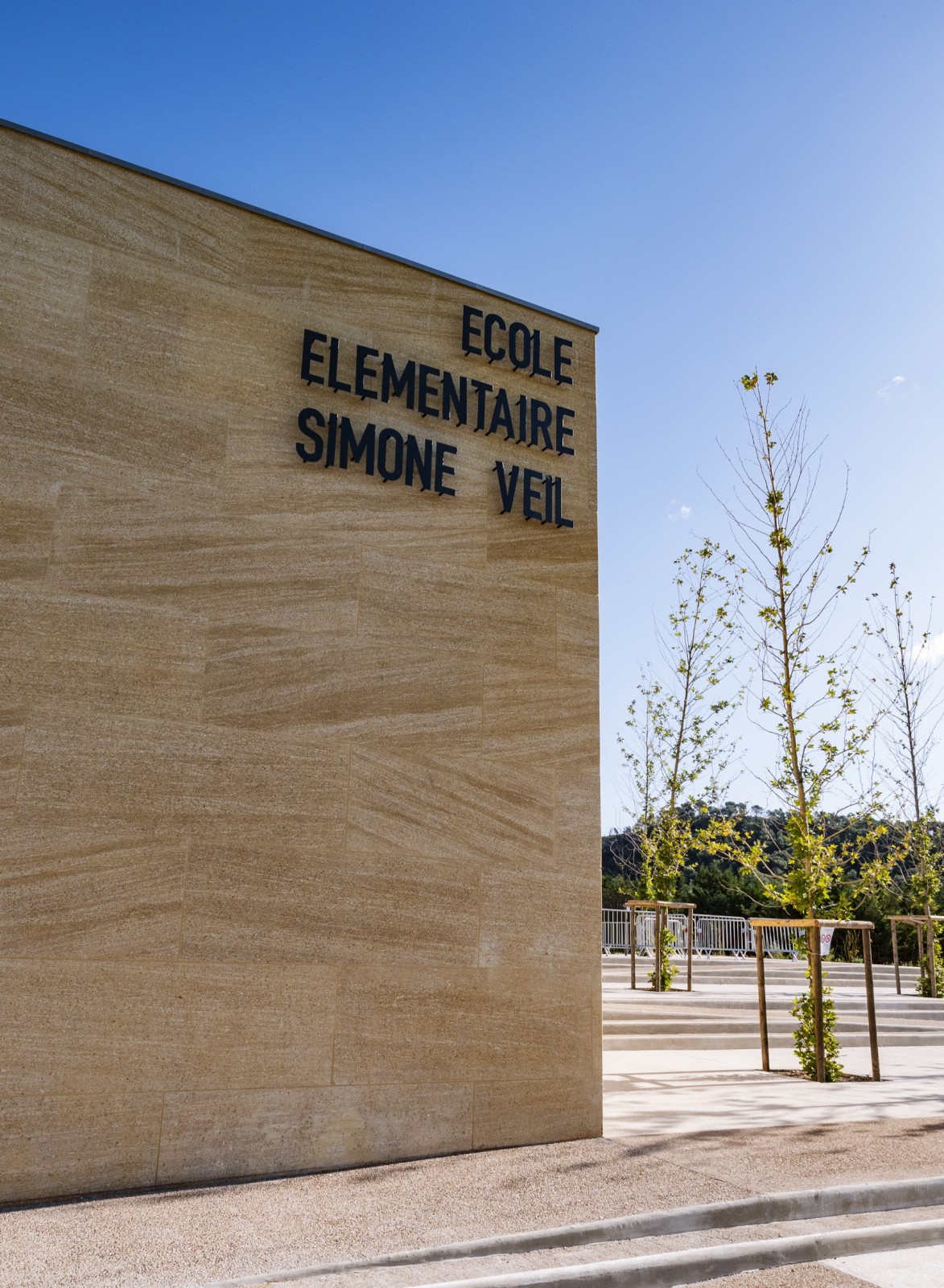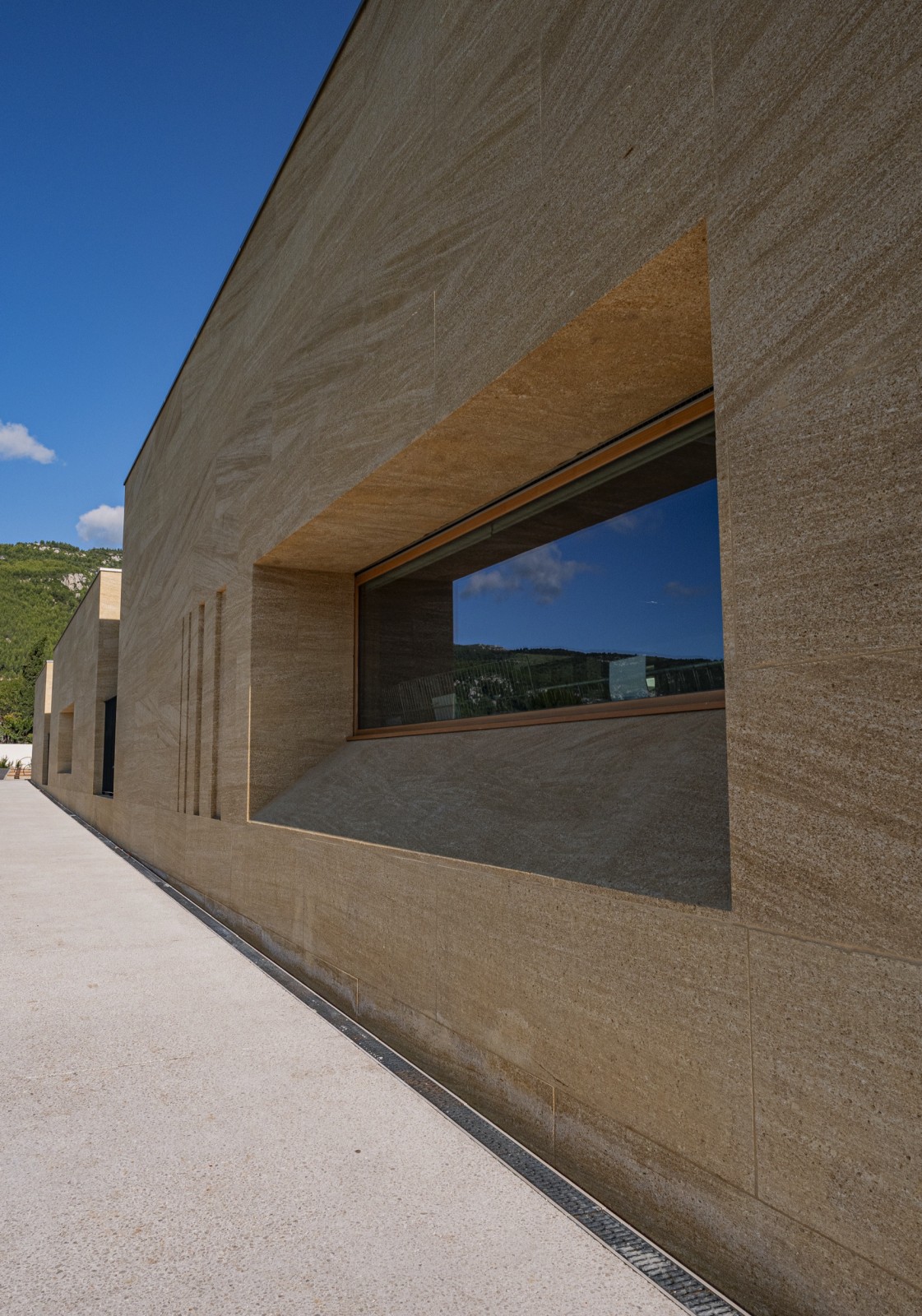 Pierre de couleur ocre avec un aspect coquillé, elle met en valeur toute l'architecture choisie pour ce bâtiment.