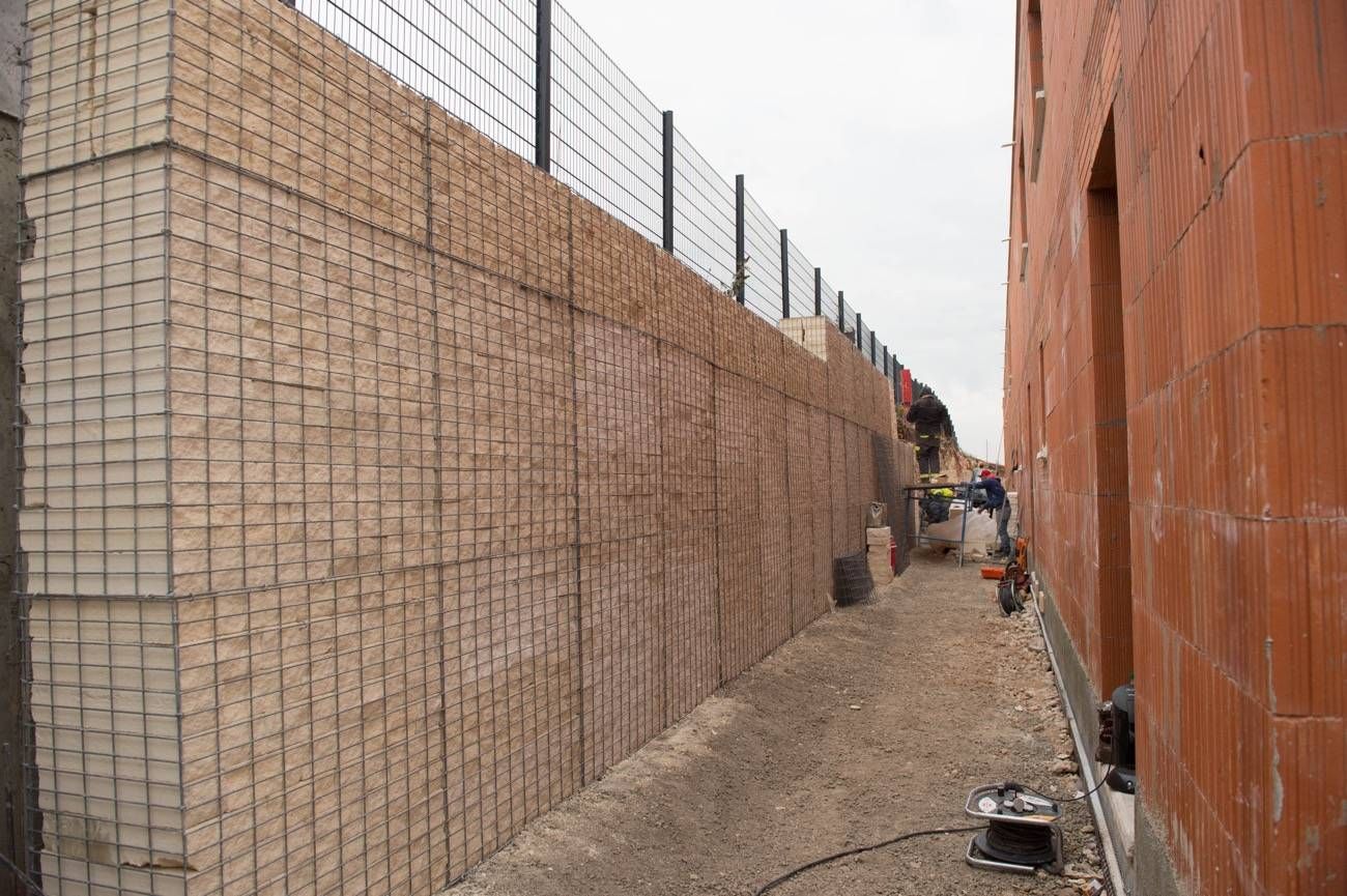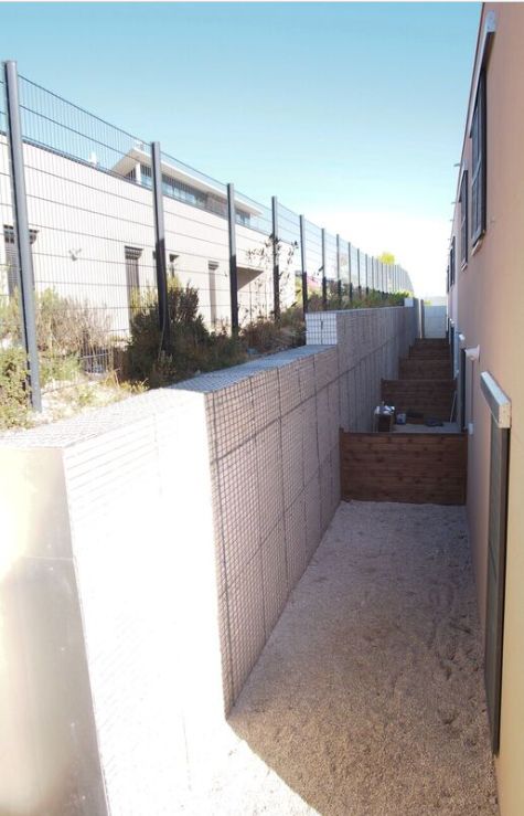 Il s'agit d'un projet à la Duranne, sur Aix-en-Provence, de mur décoratif de gabions éclatés en Estaillades.