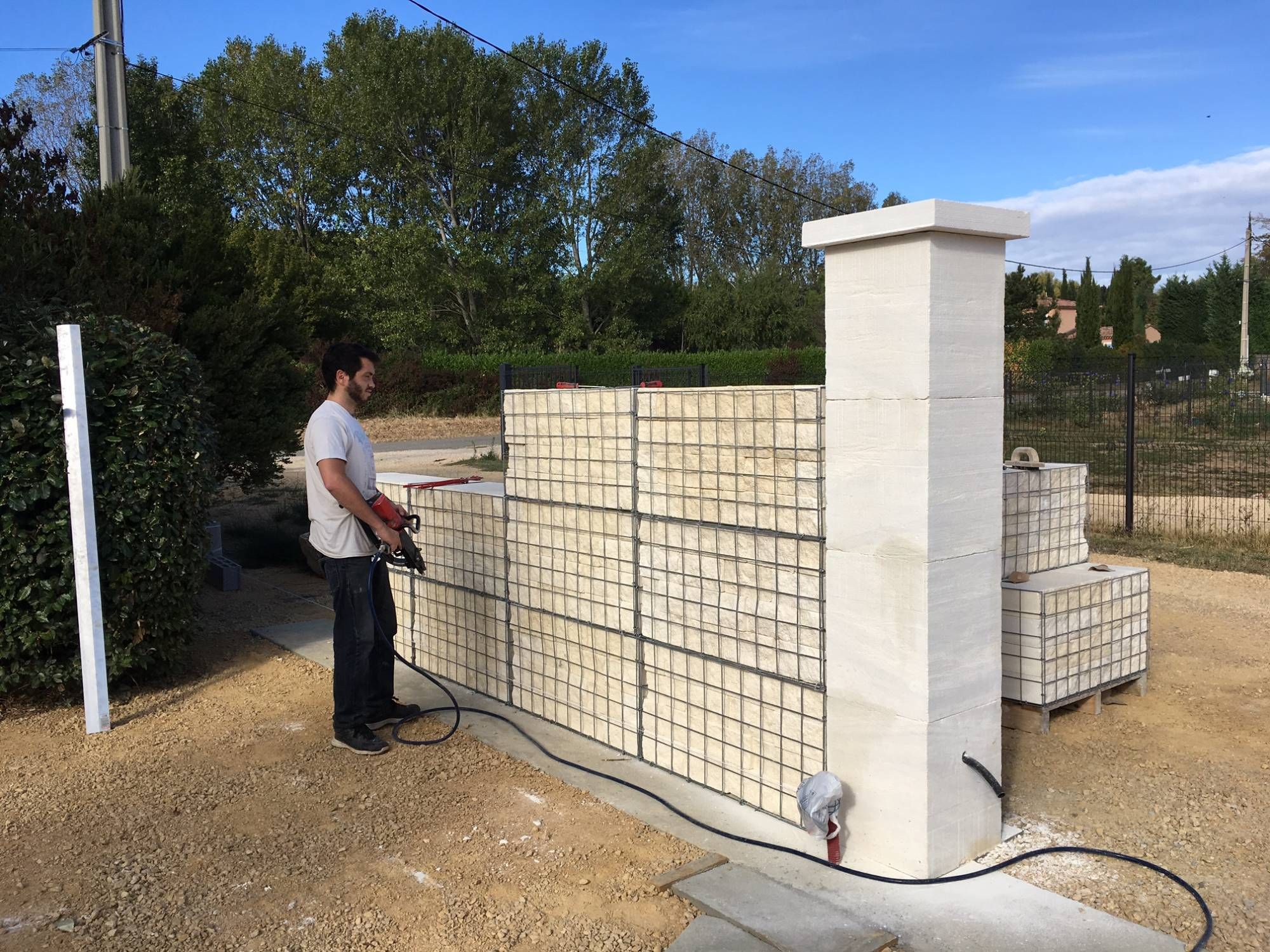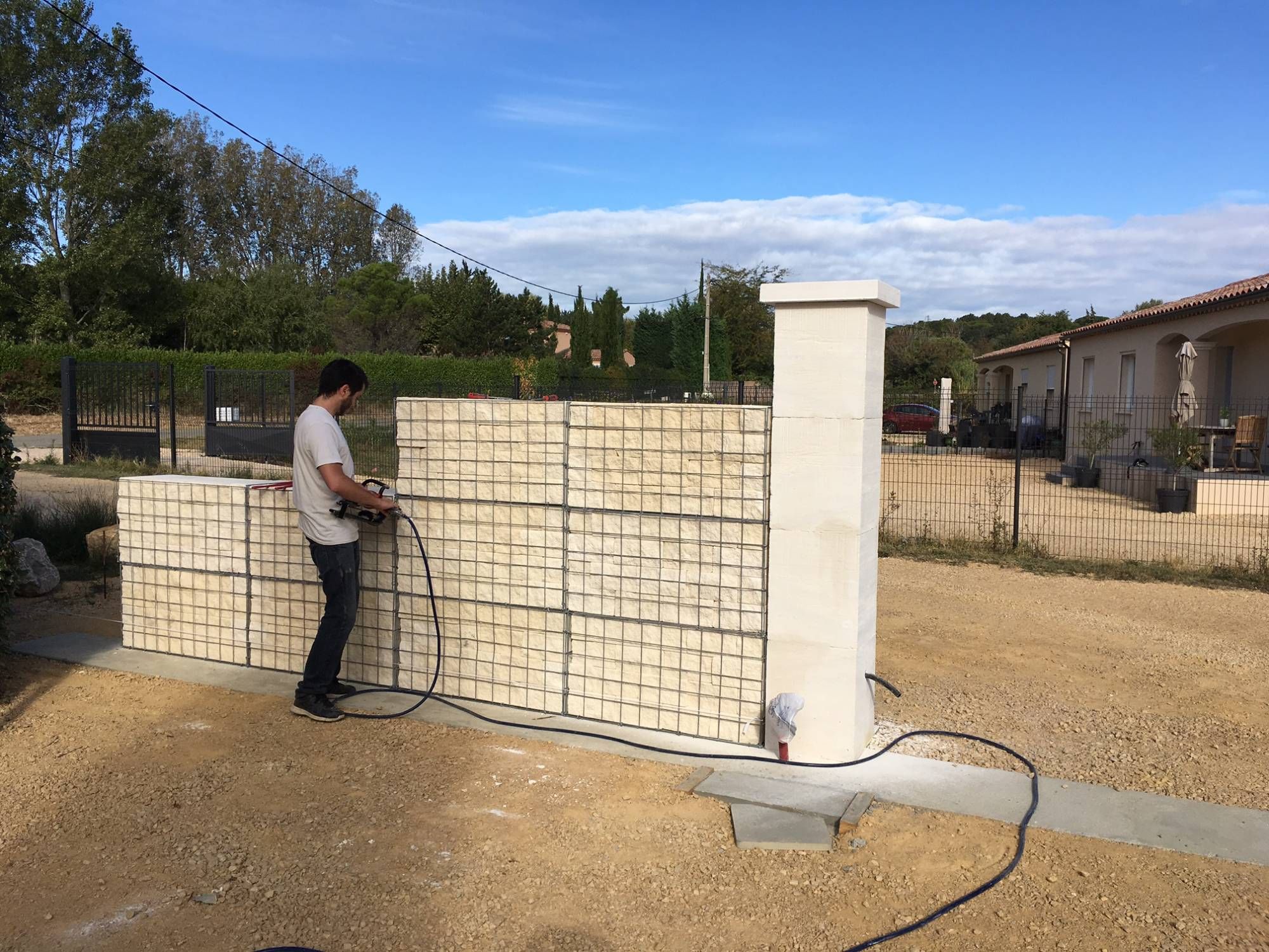 De plus, un pilier en pierre d'Estaillades est également monté afin de finir le mur et d'apporter une présentation finie et qualitative.