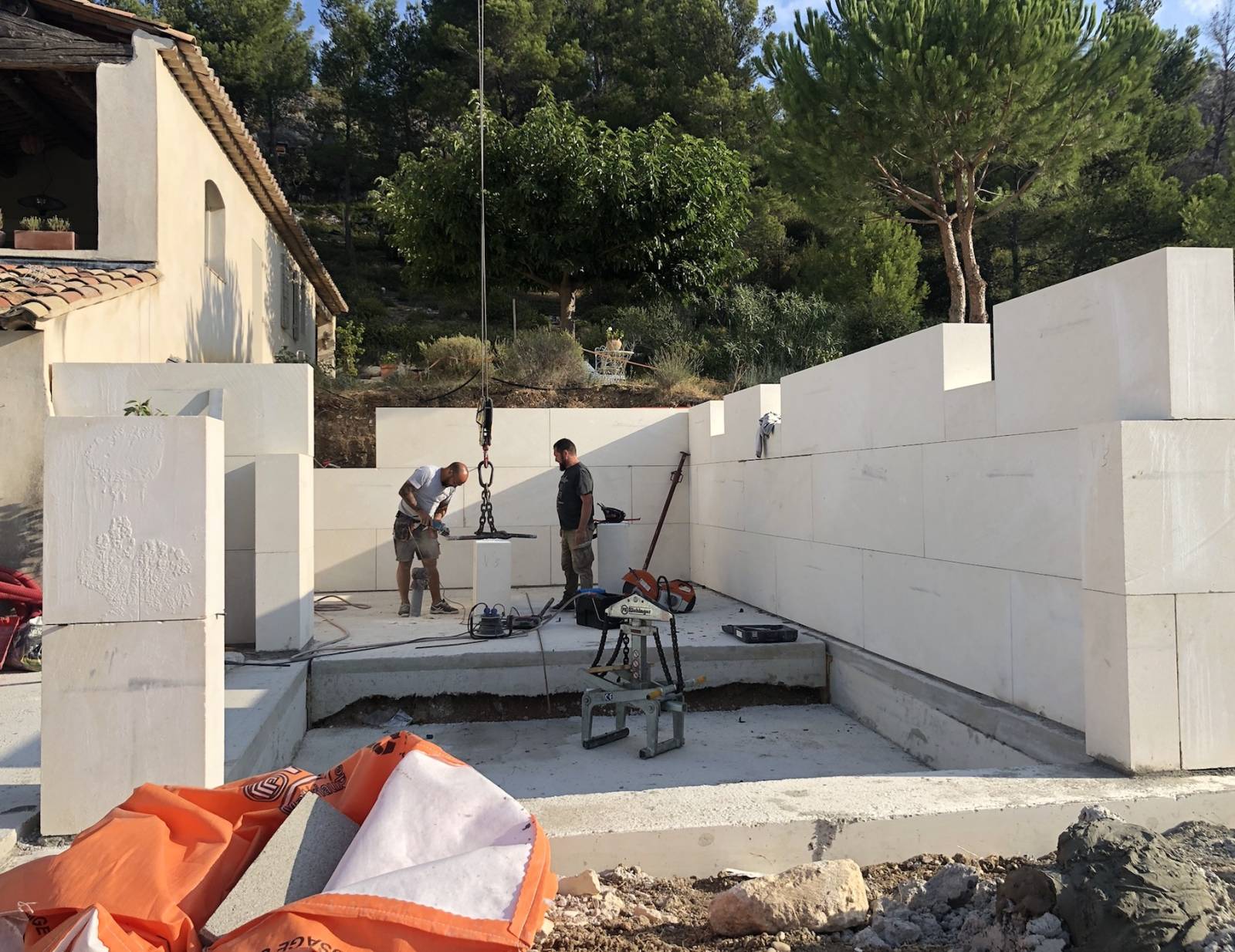 - Le dallage de la piscine,