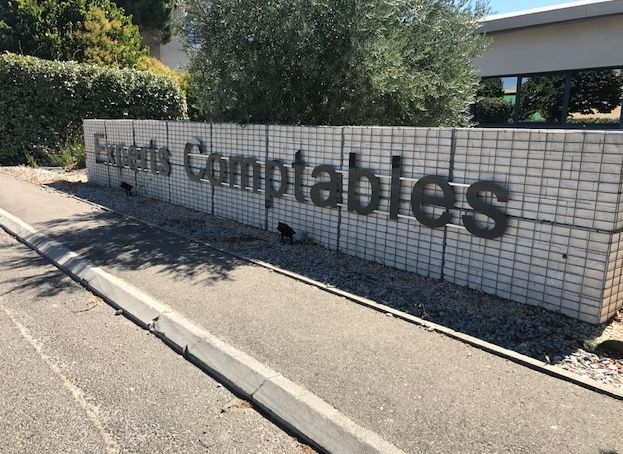Cette réalisation permet d'afficher la devanture d'un cabinet d'expertise comptable et de se différencier des autres cabinets avec cet accueil original et d'aspect visuel très professionnel.