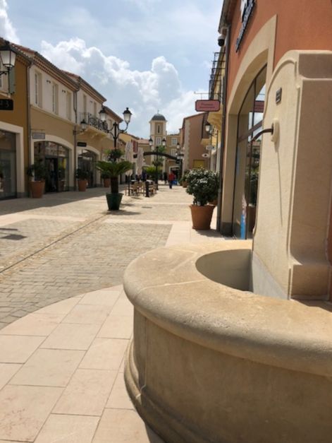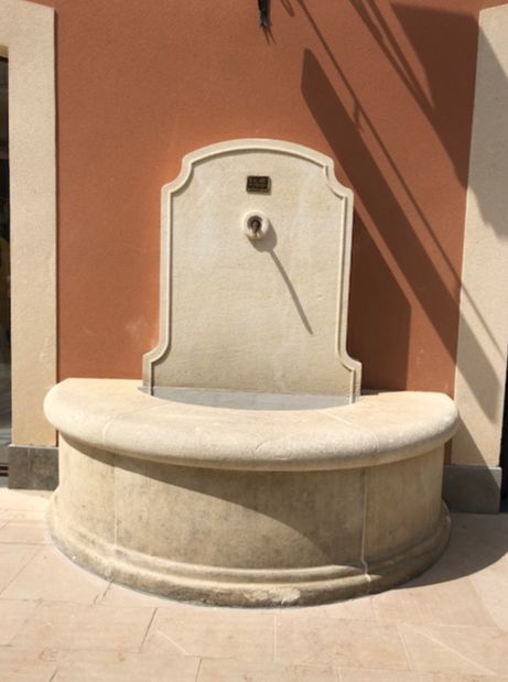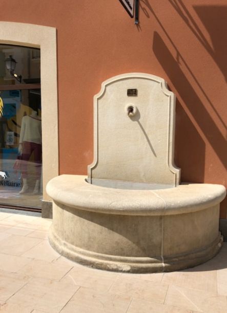 Réalisation d'une fontaine en pierre massive au village des marques à Miramas.