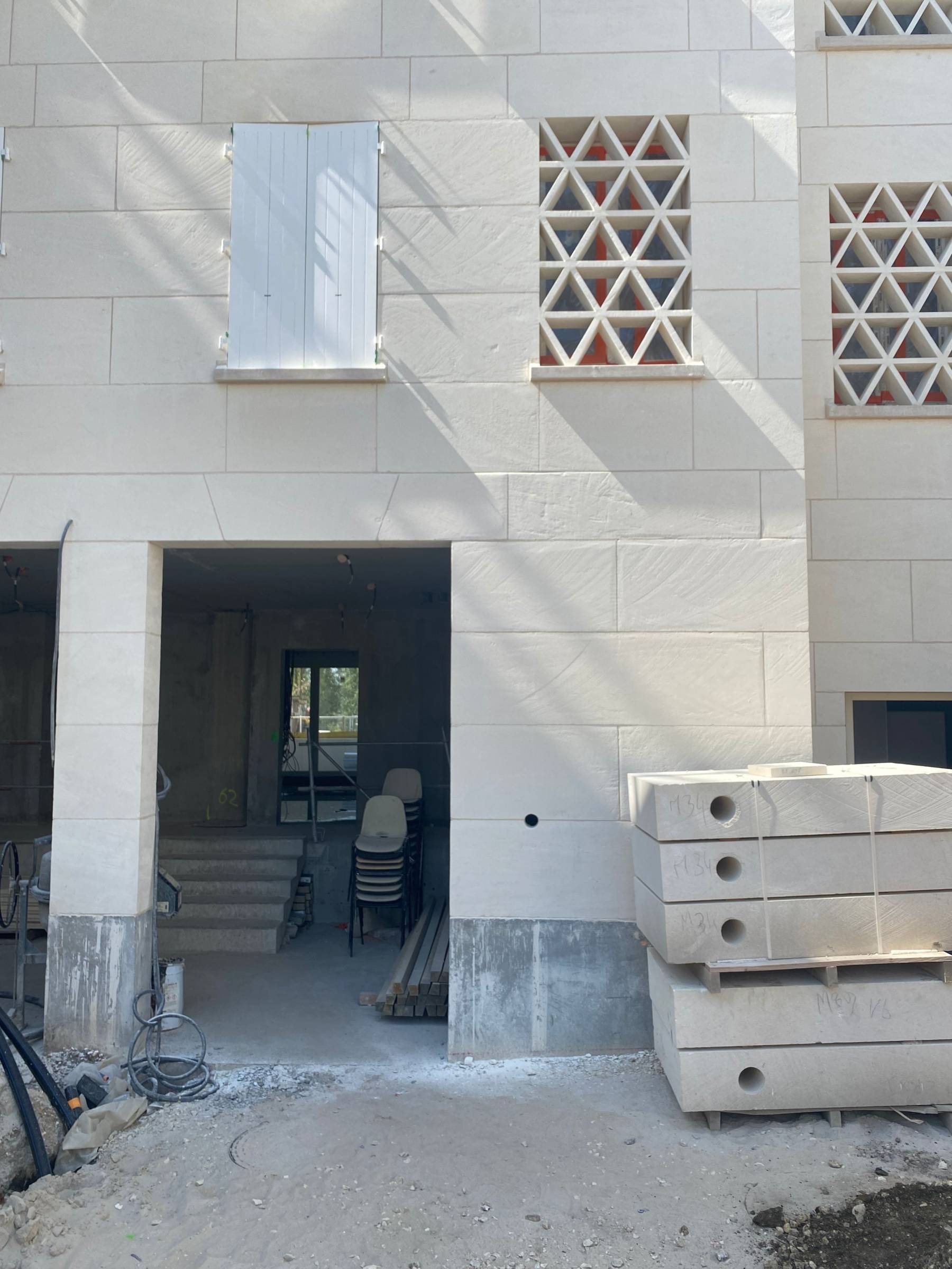 - Pierre de Fontvieille : Pierre de couleur blanche, à grain moyen,