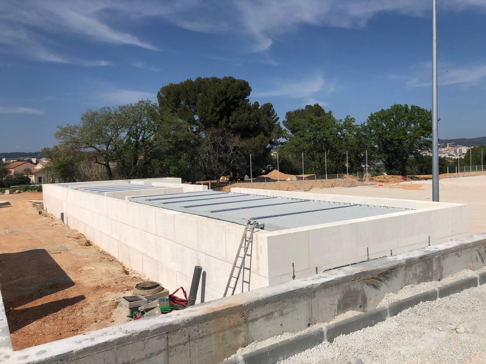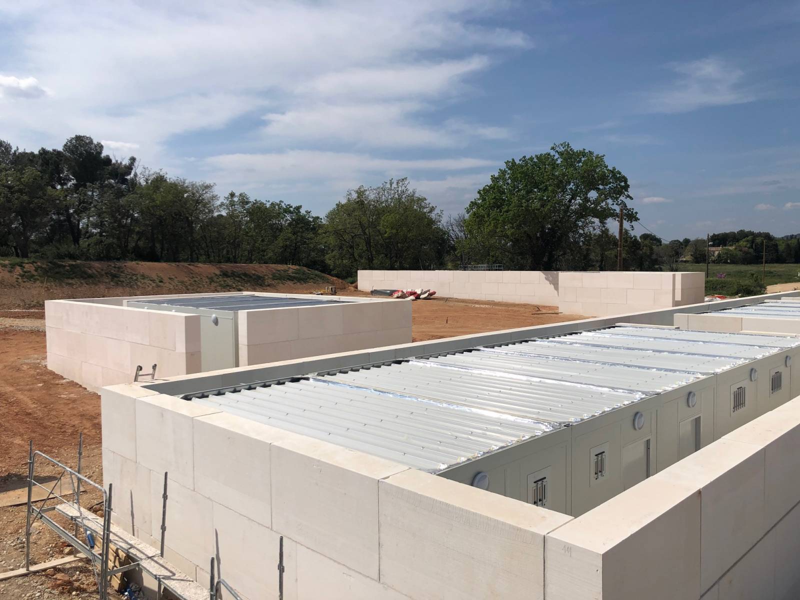 finition extérieure pour habiller les préfabriqué des vestiaires.